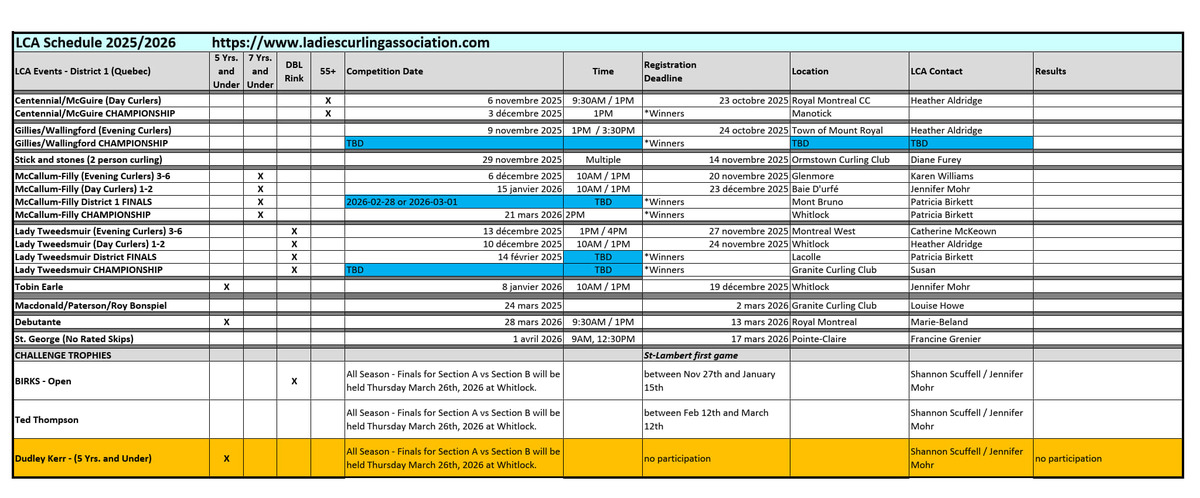 Pour plus d'information sur la ligue, veuilez consulter le site web / For more information on the league, please visit the website: https://www.ladiescurlingassociation.com/